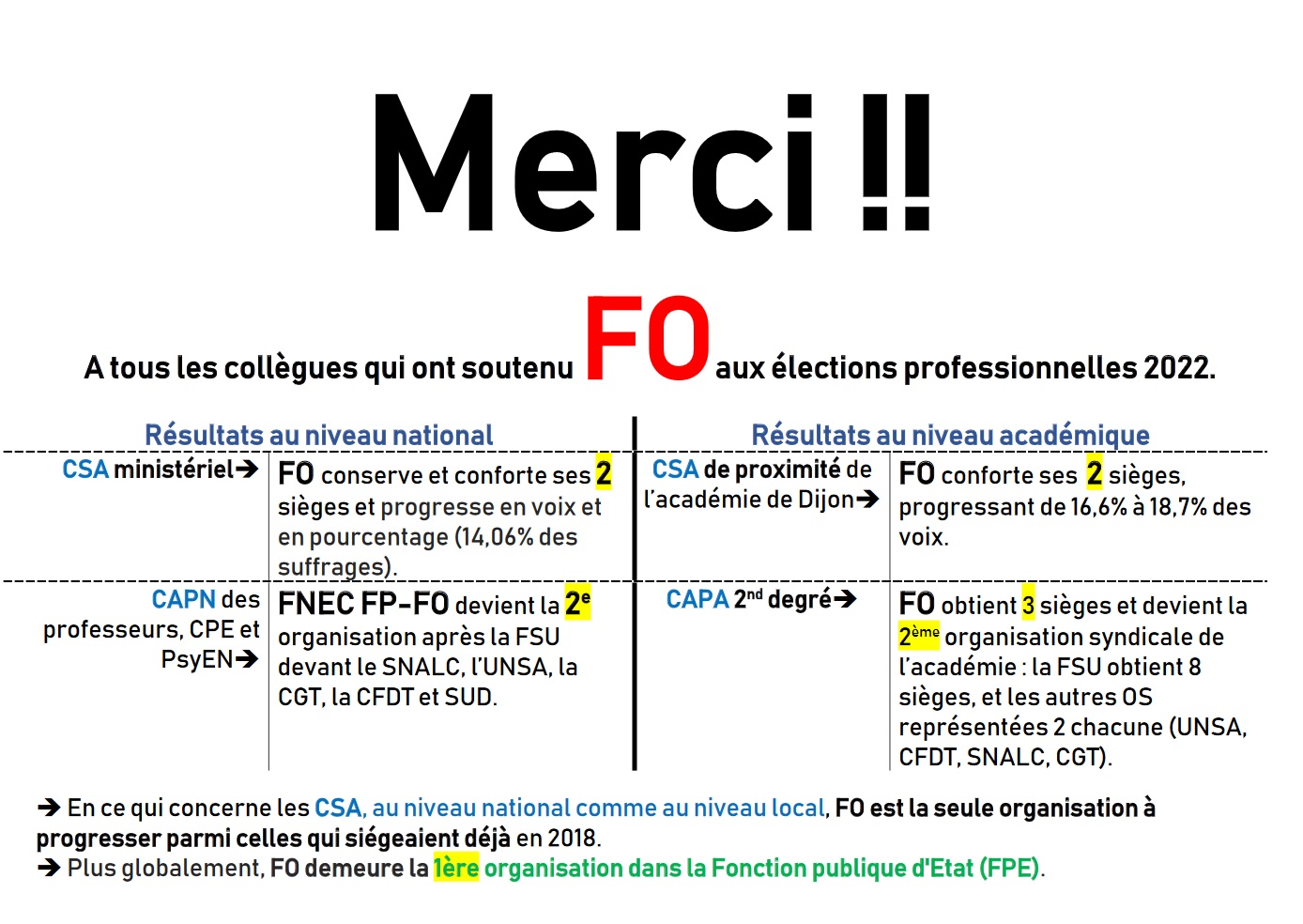 MERCI !!! A tous les collègues qui ont soutenu FO aux élections professionnelles 2022.