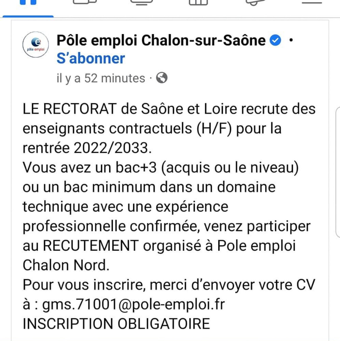 Il est possible de trouver des annonces sur les réseaux sociaux du Pôle Emploi de Chalon (71)