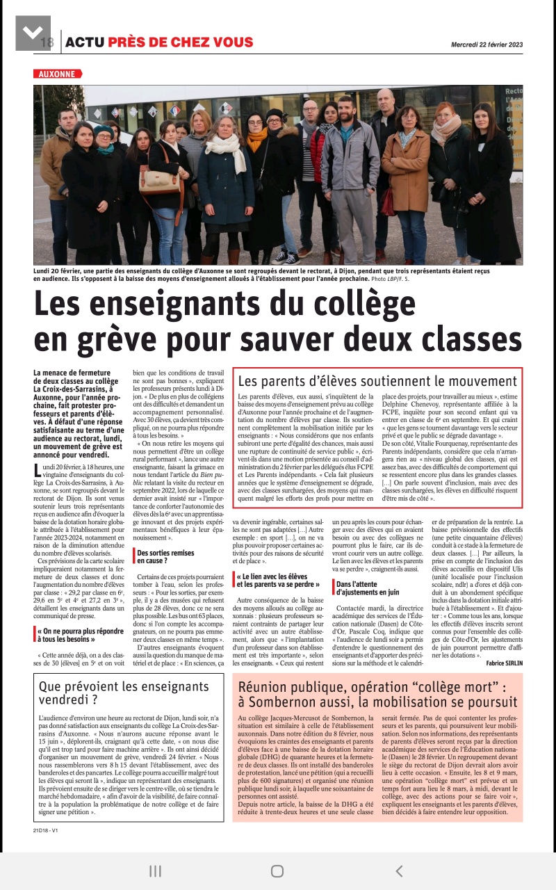 DHG 2023, la grogne au collège de la Croix des Sarrasins à Auxonne.