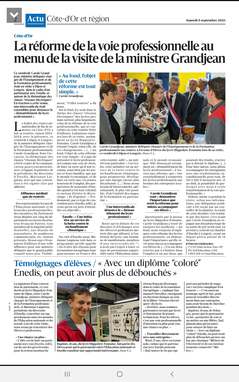 Visite de Carole Grandjean, ministre déléguée chargée de l’Enseignement et de la Formation professionnels au lycée H.Fontaine : Rassemblement devant le lycée Hippolyte Fontaine à Dijon :