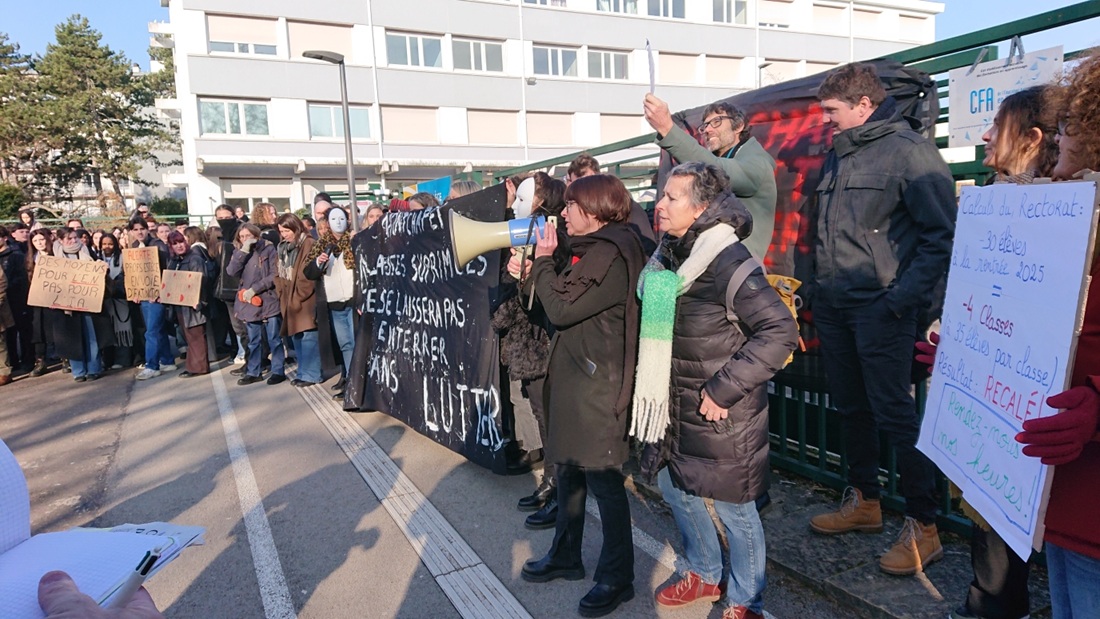 Hier matin au lycée Montchapet, à l’initiative des déléguées FO de l’établissement, profs et élèves protestaient contre la baisse de 90 heures dans la DHG 2025.